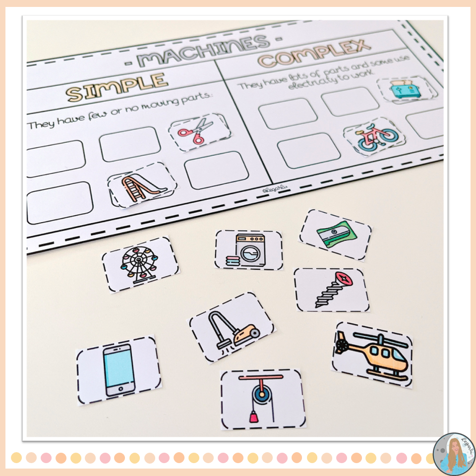 Material para trabajar de forma manipulativa las MÁQUINAS SIMPLES Y COMPLEJAS en INGLÉS.